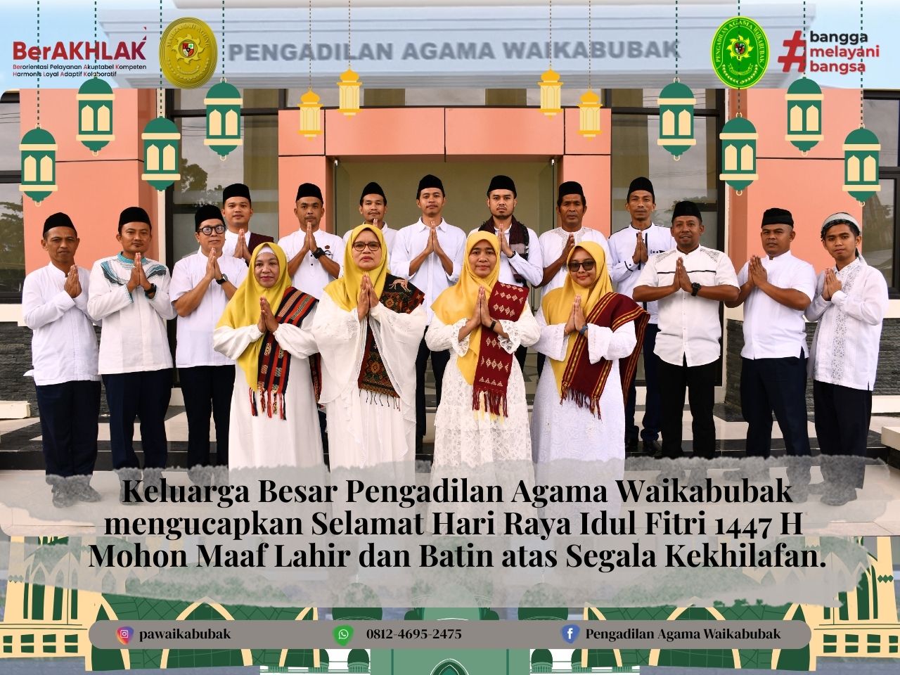 Waikabubak, Maret 2026 β Keluarga Besar Pengadilan Agama (PA) Waikabubak mengucapkan Selamat Hari Raya Idul Fitri 1447 H, Mohon Maaf Lahir dan Batin. Momen kemenangan ini menjadi ajang bagi seluruh ap...