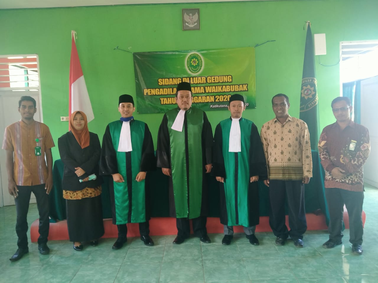 Waikabubak - Kamis 11 Juni 2020, Pengadilan Agama Waikabubak melaksanakan sidang di luar gedung pengadilan pertama di tahun 2020. Sidang di luar gedung pengadilan tersebut dilaksanakan di aula Kantor Urusan Agama (KUA) kecamatan Katikutana kabupaten Sumba Tengah yang disidangkan oleh majelis hakim yang diketuai Muhamad Jamil, S.Ag., didampingi oleh Mohammad Agus Budiawan, S.H.I. dan Aris Nur Muโalim, S.H. yang masing-masing sebagai hakim anggota satu dan hakim anggota dua serta dibantu oleh Kurniati, S.H. sebagai panitera pengganti.